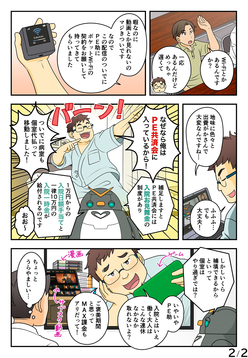 PE共済会の給付制度をマンガで楽しくご紹介します。