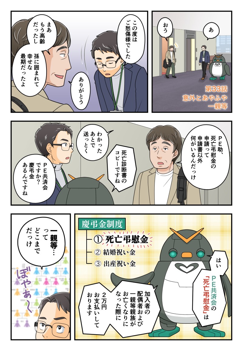 | < 共済まんが >「がんばれ! PE(ぺー)助 」 |